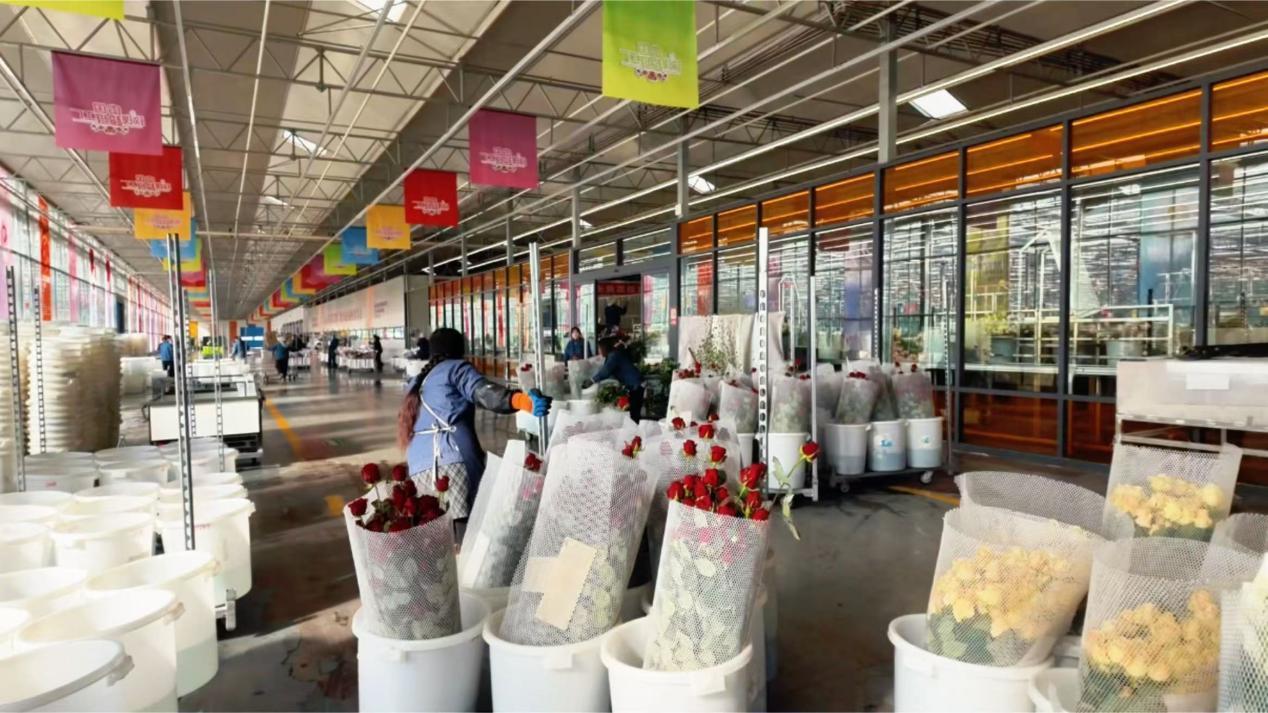 基地里,玫瑰以每40天一茬的速度茁壯生長,日產鮮切花達20萬枝。企業提供了超過500個就業崗位,不僅吸引本村村民,還有很多來自周邊縣區的務工者。許多像婷婷一樣的女工,在這里找到了人生第一份工作。