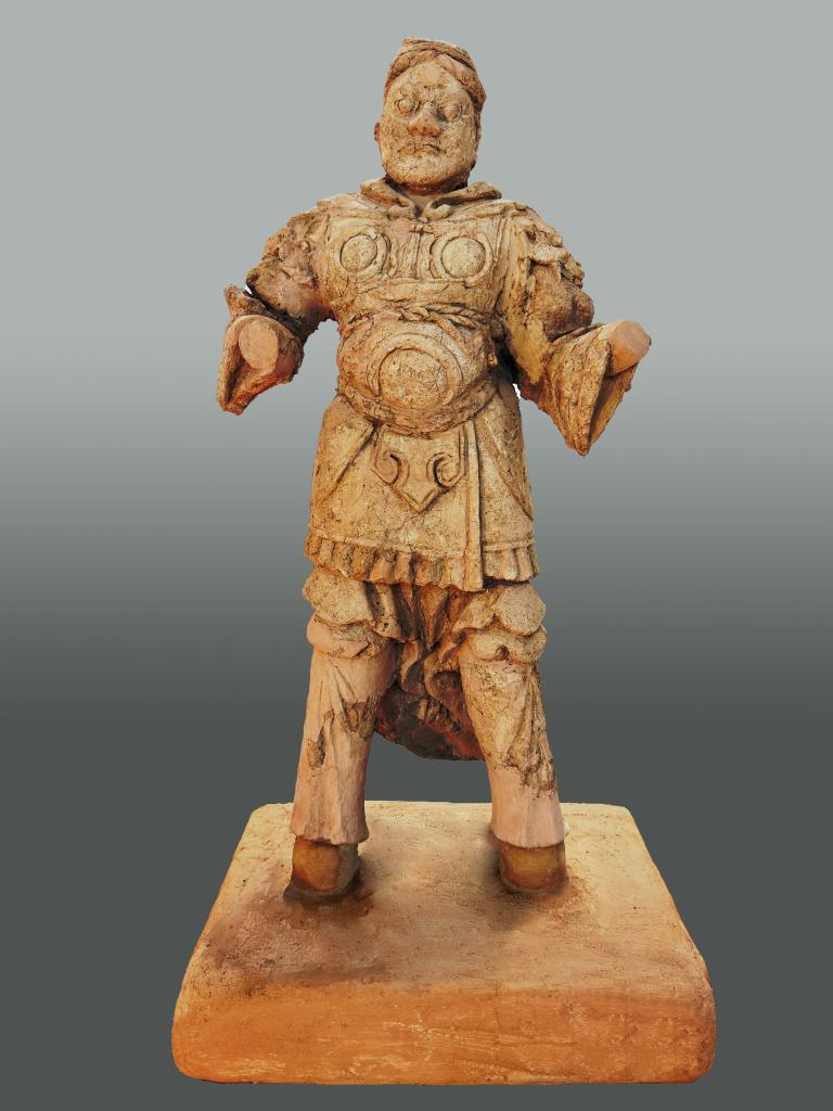 這是庫車市友誼路墓群發掘出土的武士泥俑。(新疆文物考古研究所供圖)