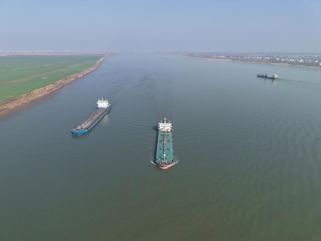 這是在湖南省臨湘市江南鎮長江村拍攝的長江(無人機照片)。新華社記者丁春雨 攝