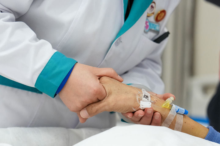 郭翠紅緩步走到病床前,將精油搓熱,俯身撫揉張女士僵硬的手臂,動作格外輕柔。這種溫和的照護方式能舒緩神經、促進血液循環,緩解身體不適。
