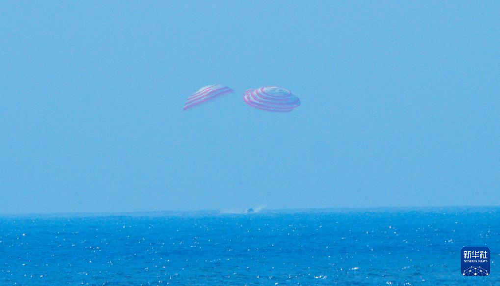 2月11日,夢舟載人飛船返回艙按程序受控安全濺落于預定海域。新華社發(王衡 攝)