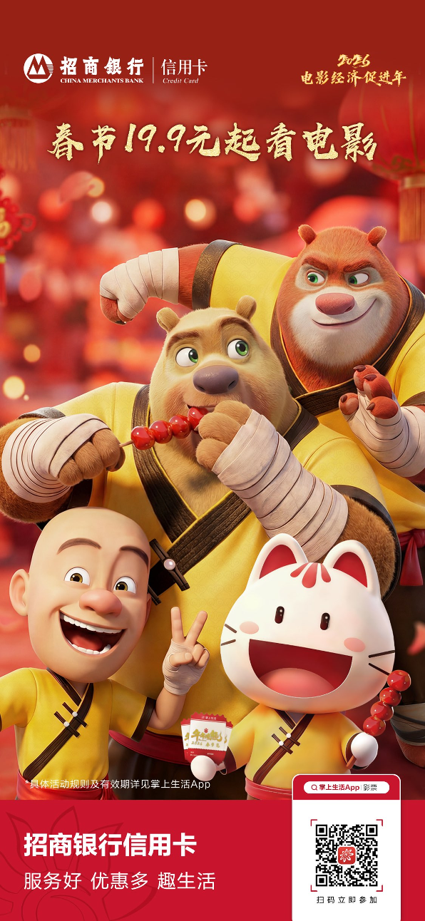 即日起至春節(jié)期間,招商銀行將聯(lián)合春節(jié)檔熱門影片《熊出沒·年年有熊》與《飛馳人生3》開啟全國商圈IP路演活動,還將整合商圈內(nèi)餐飲、零售、影院等多業(yè)態(tài)開展促消費相關(guān)活動,助力提振新春線下消費需求。預計活動將落地北京、天津、成都、西安等多地。