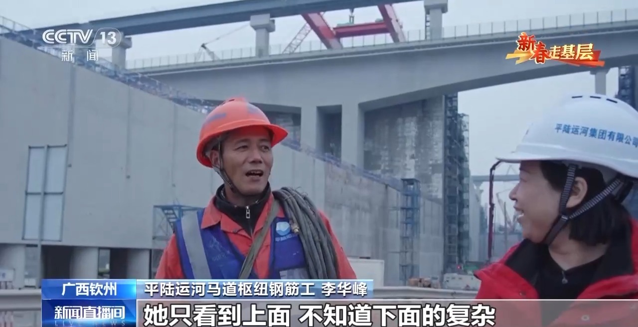 平陸運河馬道樞紐鋼筋工 李華峰:這是我們干的工程,這是國家世紀工程是吧。等開通之后,過兩年肯定過來看一下。帶家人坐火車過來看一下。我老婆只看到上面,不知道下面的復雜。