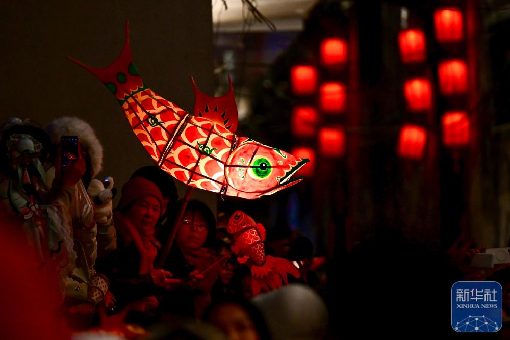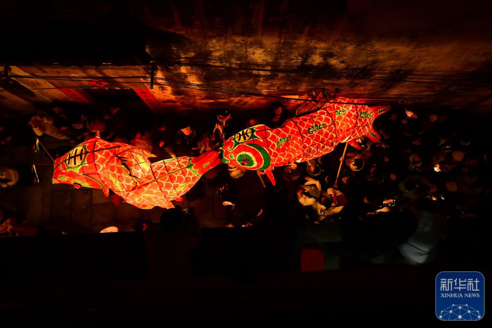 2月7日,瞻淇村魚燈隊在村中表演。