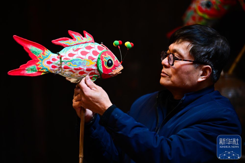 1月29日,瞻淇村的縣級非遺項目瞻淇魚燈代表性傳承人汪卓葷在制作魚燈。