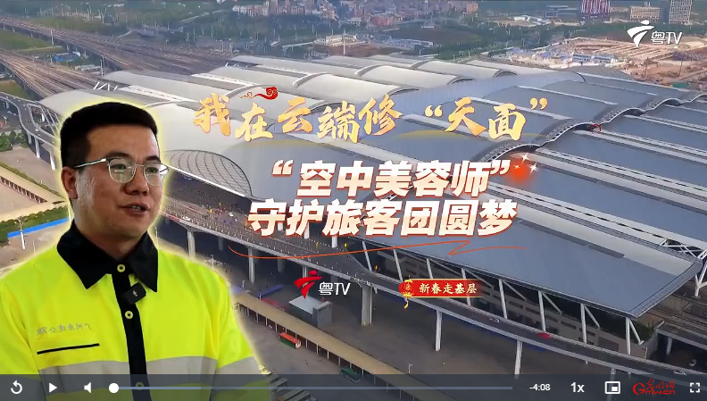 今天的新春走基層,讓我們跟隨國鐵廣州局廣州南房建工區工長黃榮彬,去看看這些車站“空中美容師”的日常。