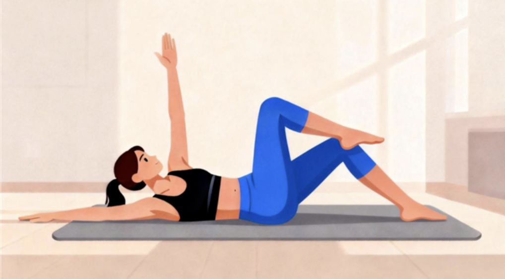 2.側(cè)向伸展:站立位,雙腳與肩同寬,雙手交叉舉過頭頂;向左側(cè)緩慢彎腰,直到右側(cè)腰部有拉伸感(不要扭轉(zhuǎn)身體),保持15-20秒,回到中立位后換側(cè)重復,每側(cè)2-3組。