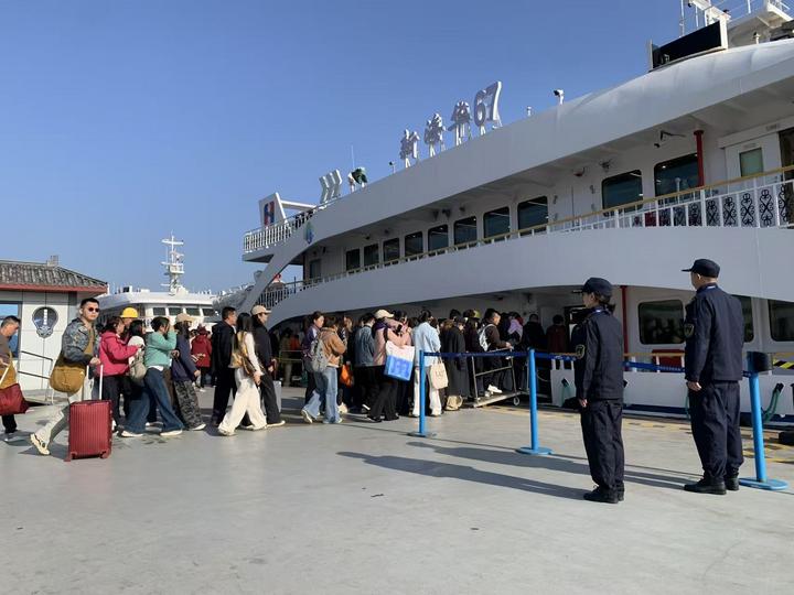 為此,浙江省海事部門在熱門航線加密現場巡查力量,依托智慧海事系統實現重點水域24小時動態監管,朱家尖至普陀山客運航線日發班艘次由節前的220艘次增至700艘次,確保旅客疏運高效有序。