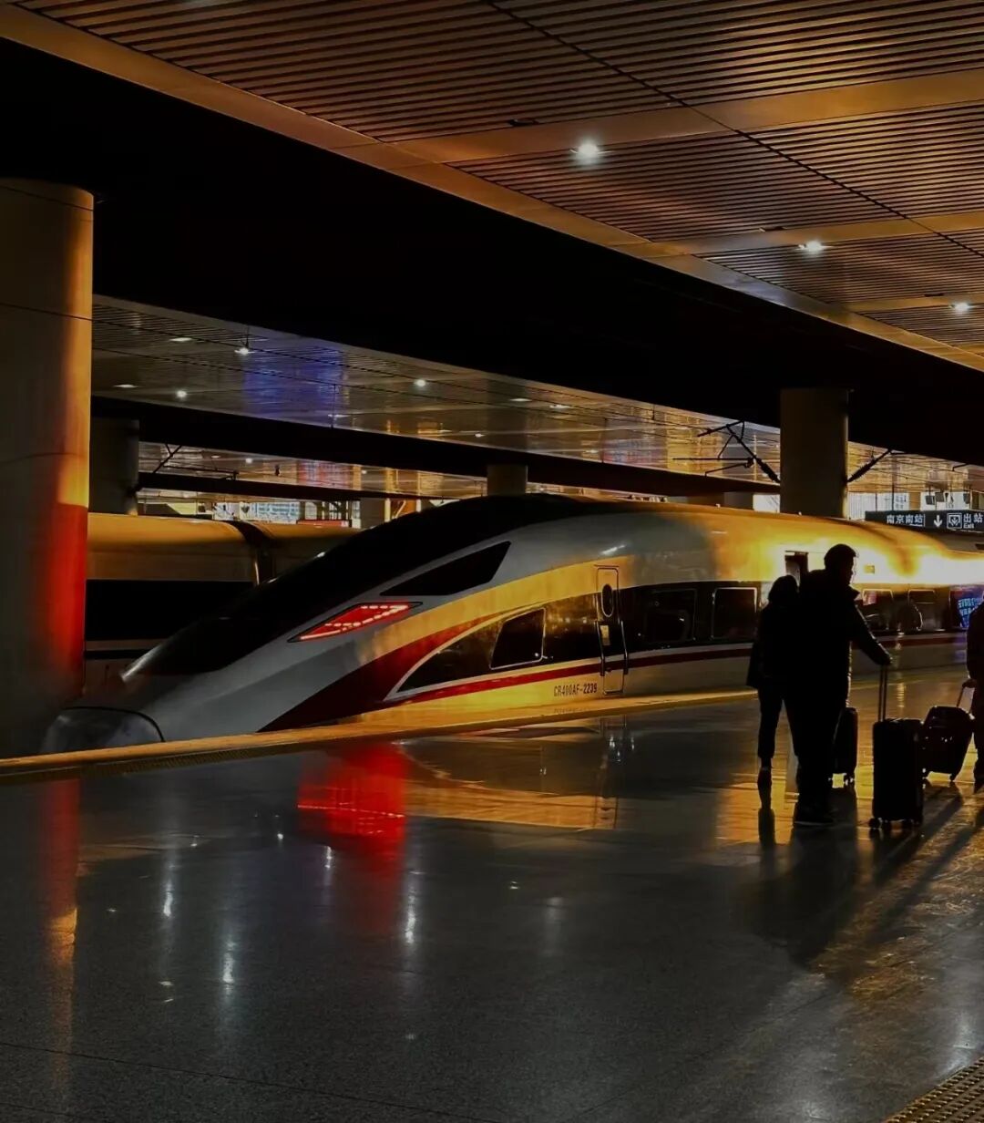 暖光為軌,列車為舟。站臺被鎏金光影包裹,復興號靜候啟程,歸人的行李箱在光潔地面拖出細碎聲響。所有的奔赴,終是為了那一盞等候的燈。