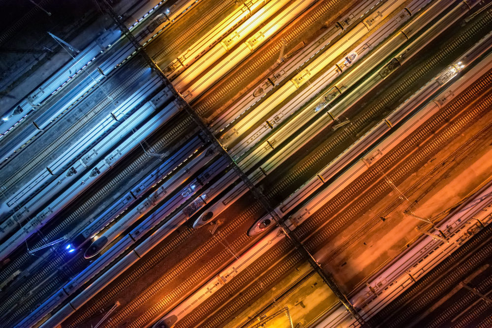 動車組列車停靠在貴陽北動車所內(2023年1月6日攝,無人機照片)。“十四五”期間,我國建成世界規模最大、先進發達的高速鐵路網。