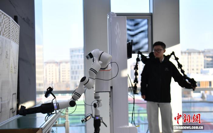 1月8日,河北雄安新區中國雄安集團數字城市科技有限公司具身智能訓練場內,機器人在進行物流裝配應用場景訓練。 中新社記者 韓冰 攝