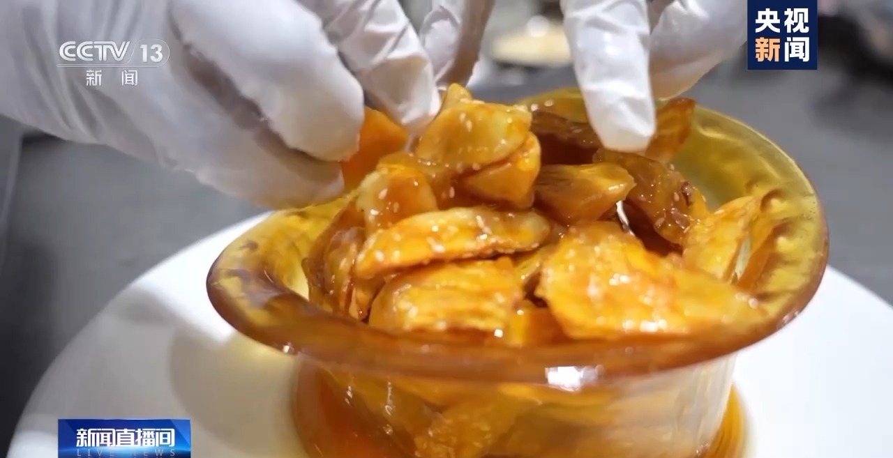 山東淄博博山區不僅是“中國琉璃之鄉”,也是魯菜重要分支——博山菜的起源地。在當地,一道融合了琉璃藝術的創意魯菜,博山糖碗琉璃地瓜,將千年琉璃技藝與魯菜風味巧妙融合。