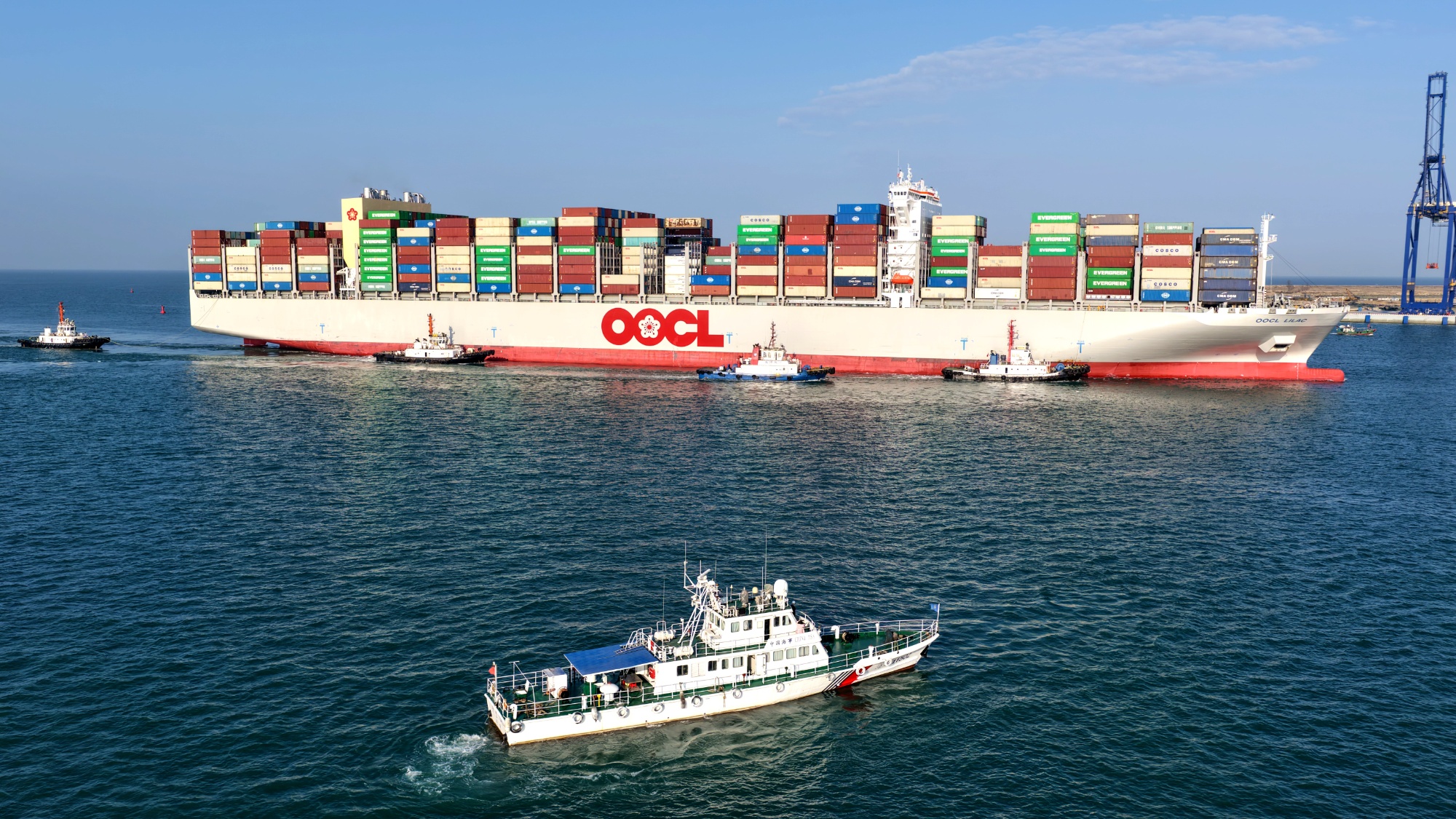 大型集裝箱船舶駛進洋浦港(央廣網(wǎng)發(fā) 洋浦海事局供圖)