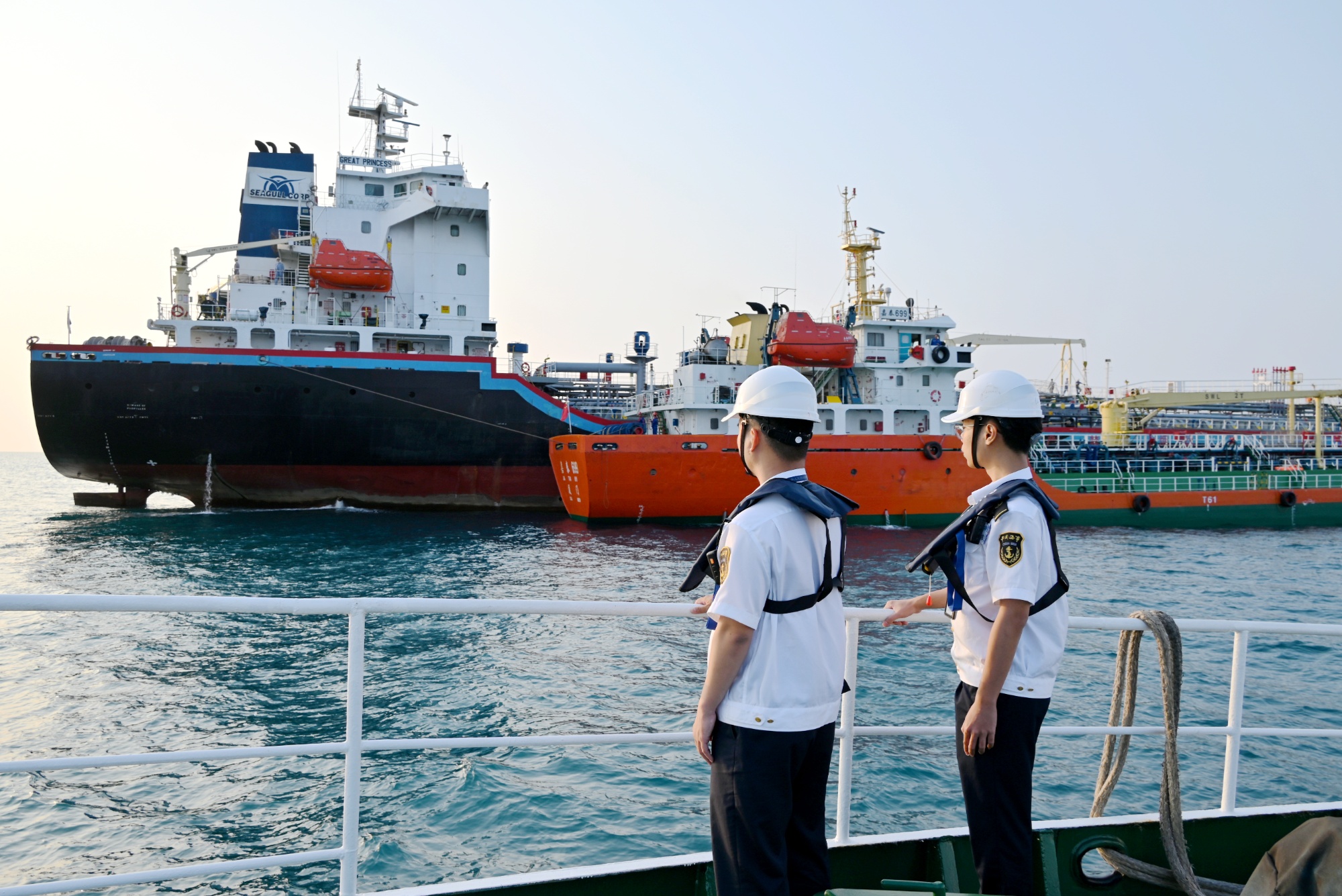 3月18日,“嘉泰699”在洋浦1號外錨地為外籍船“GREAT PRICESS”完成加注燃料油(央廣網(wǎng)發(fā) 洋浦海事局供圖)
