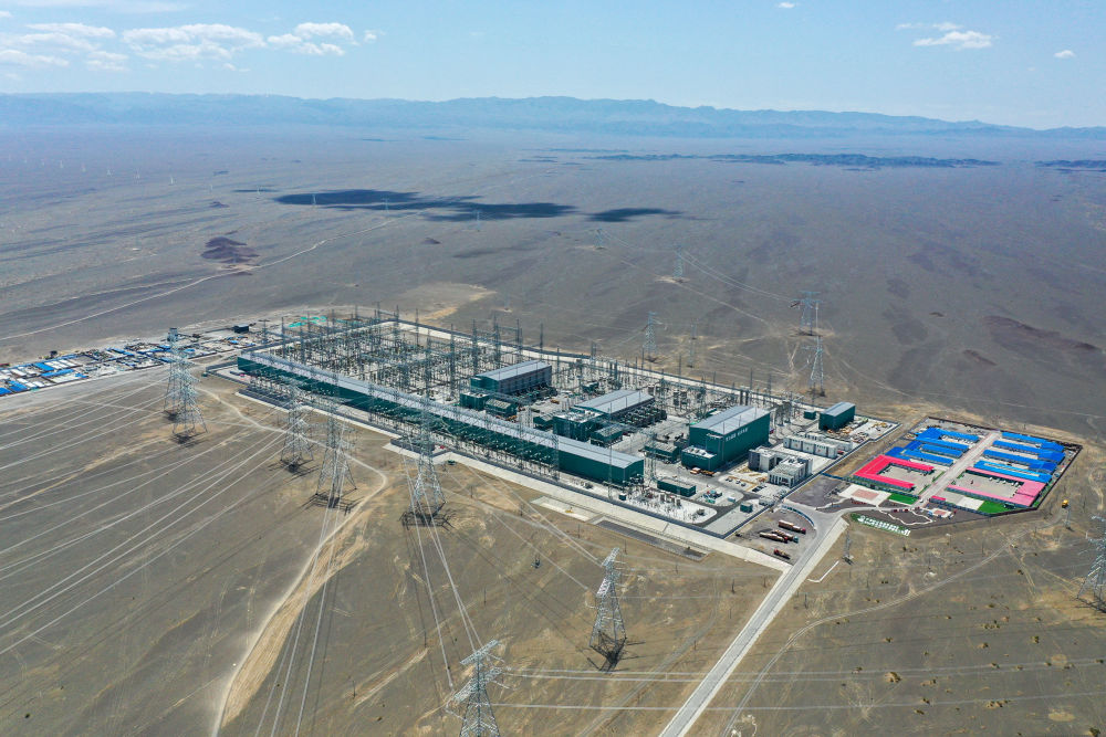 這是2025年6月10日拍攝的哈密—重慶±800千伏特高壓直流輸電工程新疆送端站——巴里坤換流站(無人機照片)。新華社記者丁磊 攝
