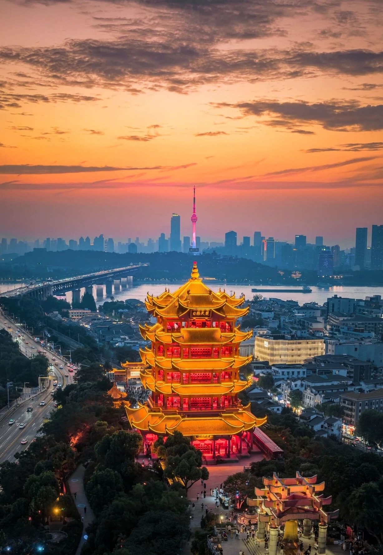 四百多年后,全國各地數萬名游客相聚于武漢龜山公園,在他們的鏡頭里,龜蛇兩山的新綠漫上山巔,長江大橋的鋼索牽著流云,黃鶴樓的飛檐挑著粉櫻。