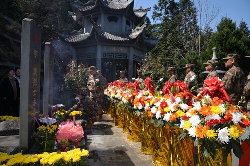 紹興市越城區(qū)“壹班長”退役軍人志愿服務(wù)隊到紹興市府山烈士陵園開展“情寄清明、緬懷先烈”祭掃活動。