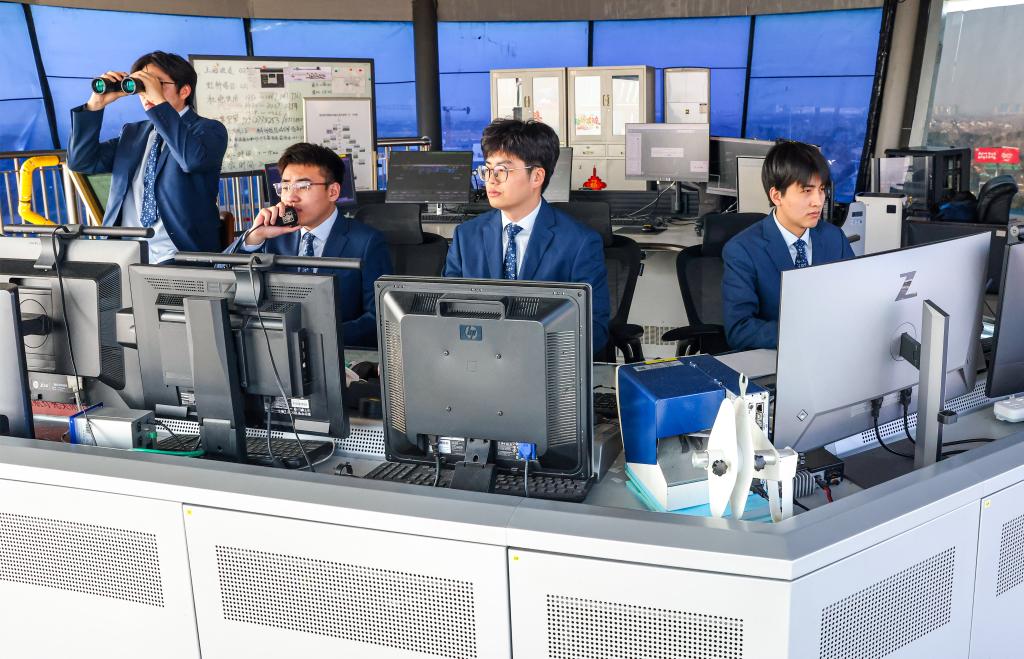 1月28日,管制員在揚州泰州國際機場塔臺指揮飛機起降。新華社發(任飛攝)