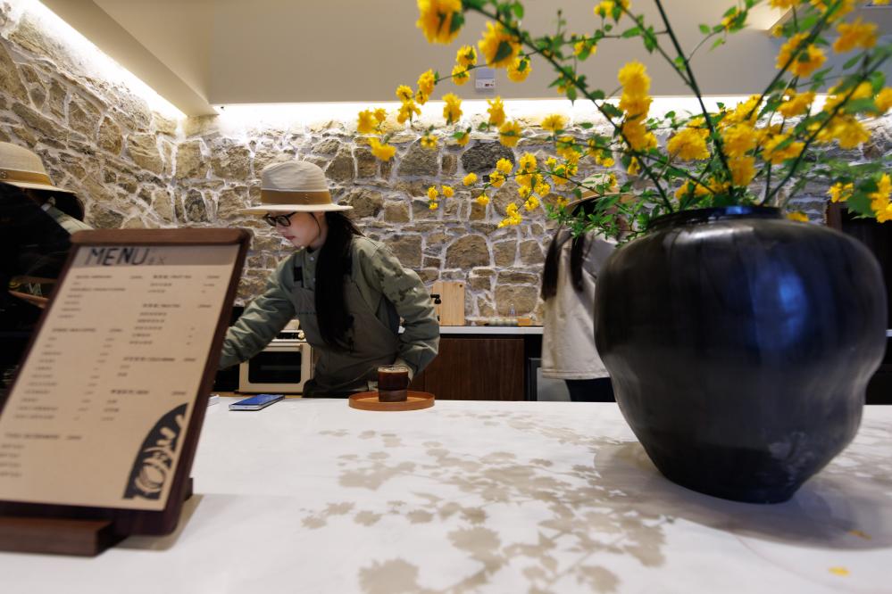 4月2日,貴州省畢節市百里杜鵑管理區普底鄉迎豐村特色民宿內,工作人員在制作咖啡。新華社記者 劉續 攝