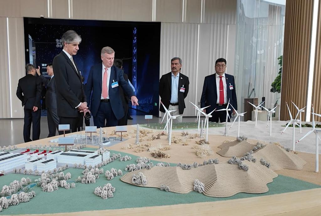 外國在港領團和商界參訪團在廣東省中山市翠亨新區規劃館參觀(4月9日攝)。新華社發(王昕怡攝)