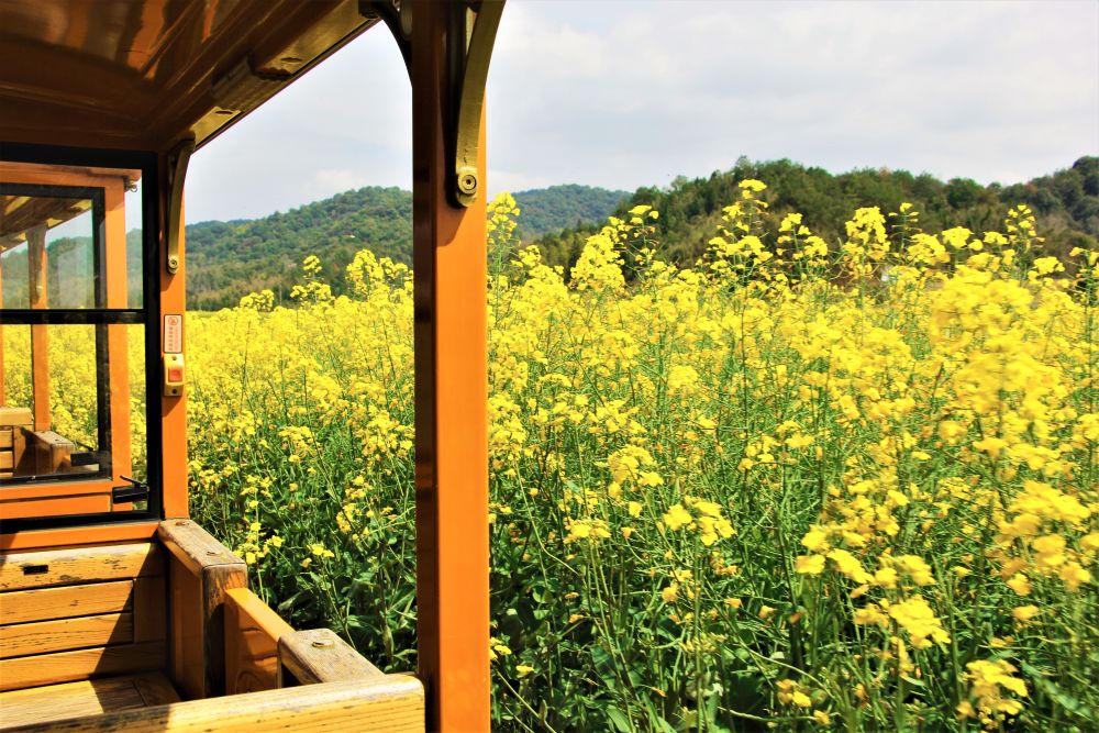 坐在車廂里向外望去,漫山遍野的油菜花隨風起伏,如金色的海洋,粉墻黛瓦的古村散落其間,春耕的農人在田間勞作,構成一幅鮮活的田園圖景。游客們紛紛舉起相機,定格下這人與自然和諧共生的春日美景,偶爾有花瓣落在車窗上,更添幾分詩意。