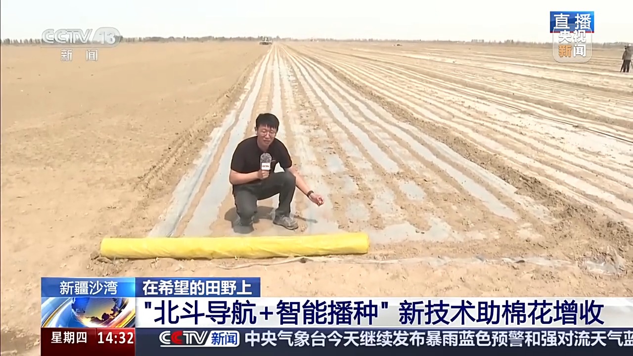 總臺記者 高鵬飛:我現在是在新疆塔城沙灣市老沙灣鎮,身后這片是500畝的高標準農田。眼下,大伙兒正忙著種棉花呢。