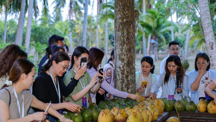 “椰子樹渾身是寶,椰肉鮮嫩、椰汁爽口、椰干當(dāng)梁、椰殼可雕、椰根入藥。”椰子所辦公室主任賈永立說。對海外華媒人而言,這里是一個“可體驗(yàn)、可傳播、可共情”的海南故事。澳大利亞澳華電視傳媒董事長任傳功感嘆,園區(qū)匯集全球諸多椰子品種,既是活態(tài)植物基因庫,也是立體的熱帶植物百科全書。游客不僅能看、能學(xué),還能通過椰子制品、椰子美食、椰雕工藝,真切感受椰子如何融入文昌人的衣食住行。
