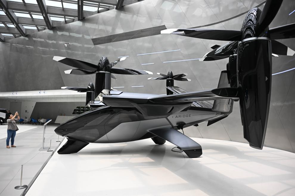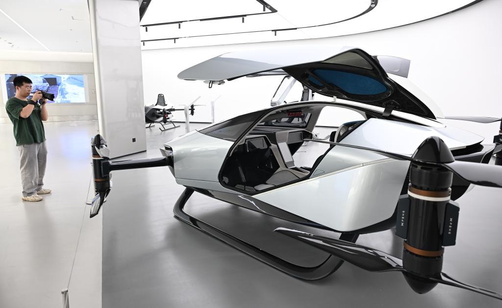 3月24日,在廣州天河區的小鵬科技園,參觀者拍攝全傾轉混電飛行汽車。新華社記者 鄧華 攝