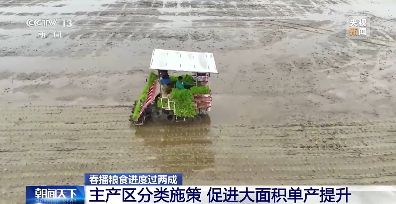 農業農村部農情調度顯示,目前,全國春播糧食進度已過兩成,同比持平略快,其中早稻播栽過八成,春玉米播種過一成,春大豆播種陸續展開,意向面積總體穩定。各地因地制宜、分類施策,促進大面積單產提升。