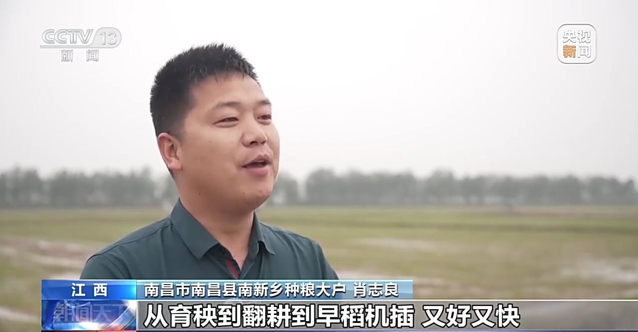 江西南昌市南昌縣南新鄉種糧大戶 肖志良:從育秧到翻耕到早稻機插,又好又快,包括后期的田間管理,收割也全部是機械化,像我一個人就種了500多畝田非常輕松。