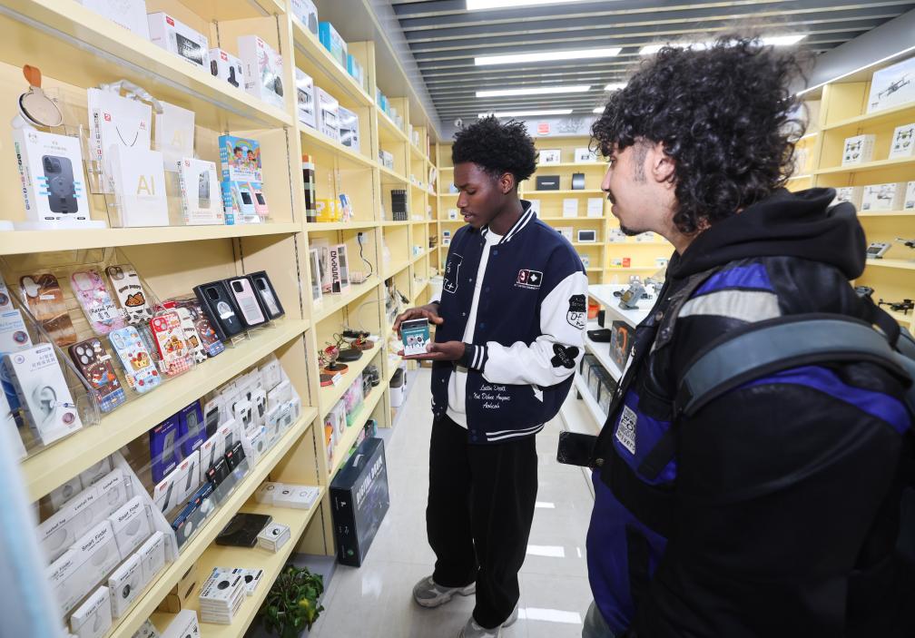 2月28日,外國客商在義烏全球數(shù)貿(mào)中心選購商品。新華社記者徐昱攝