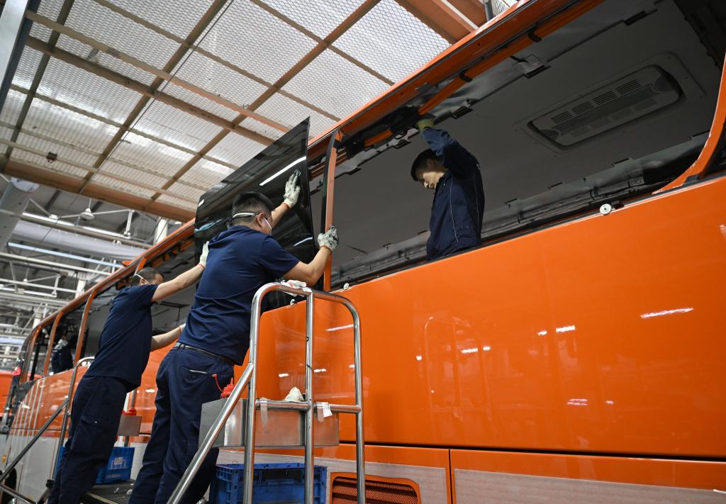 工作人員在宇通新能源廠區海外承裝車間生產線上作業(2026年3月30日攝)。新華社記者 李嘉南 攝
