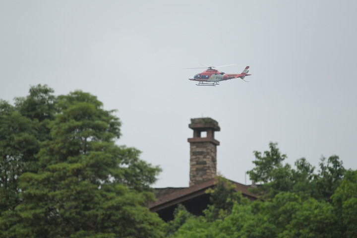 這是2024年6月20日在成都都江堰市青城山起降點拍攝的參與驗證飛行的載人直升機。