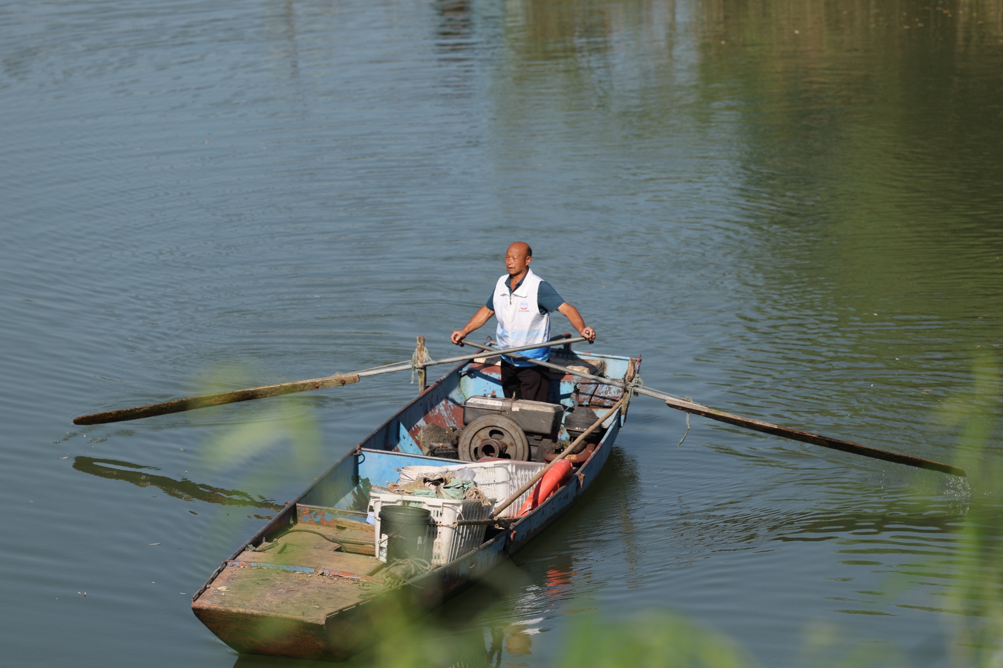 2020年,長江流域重點水域“十年禁漁”全面啟動,老蔣積極響應,主動上交跟了自己半輩子的9條漁船。后來,為了發揮他熟悉水域、水性好的特長,當地政府為他配置了一條“守井衛士”船,用于巡江清漂和水上救援。