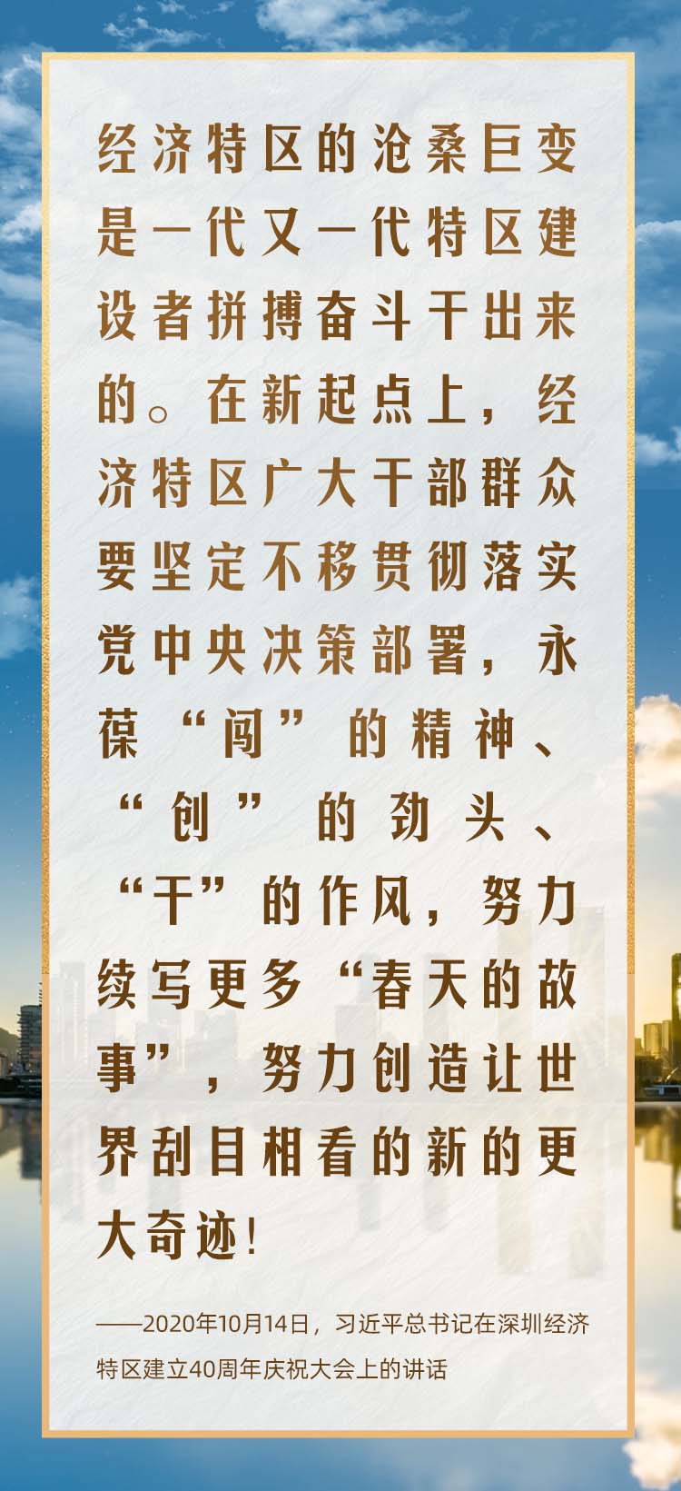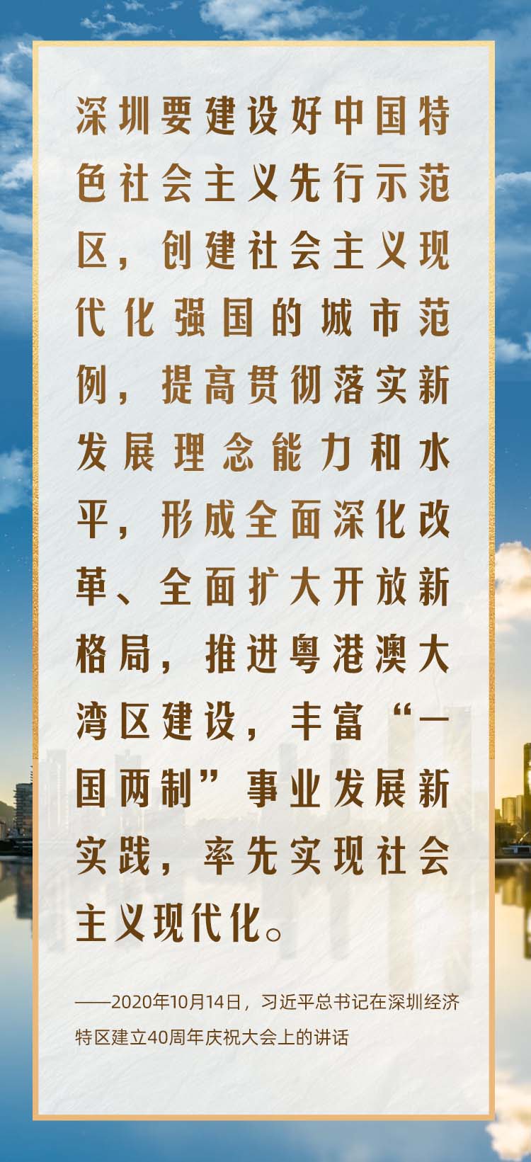 2020年10月,在慶祝深圳經濟特區建立40周年之際,習近平總書記又一次來到這里,出席慶祝大會,強調改革不停頓、開放不止步,在更高起點上推進改革開放,推動經濟特區工作開創新局面。
