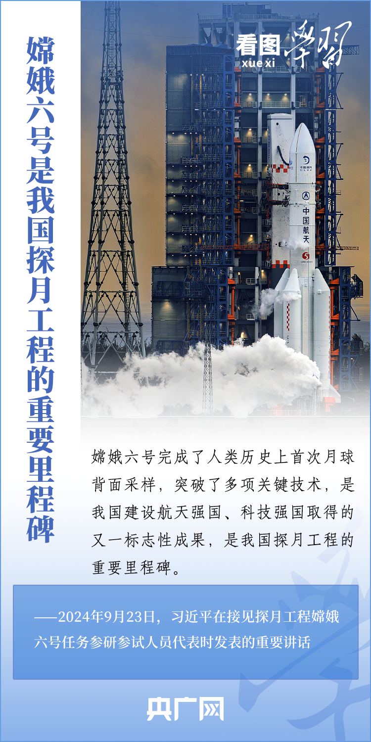 中國探月工程成果凝結著我國幾代航天人的智慧和心血。9月23日,習近平總書記接見探月工程嫦娥六號任務參研參試人員代表并發表重要講話。總書記高度肯定嫦娥六號任務成功的重要意義,以及探月工程為我國航天事業發展、為人類探索宇宙空間作出的重大貢獻,勉勵航天戰線工作者再接再厲、乘勢而上,為建設航天強國再立新功。一起來學習!