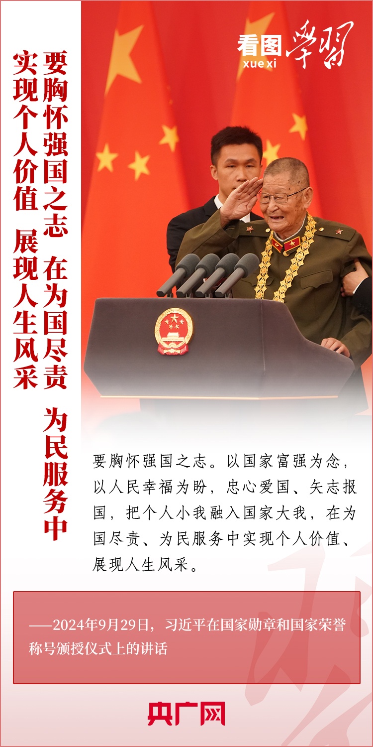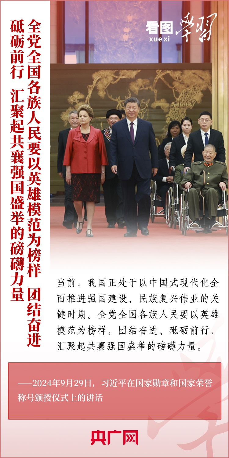 9月29日,中華人民共和國(guó)國(guó)家勛章和國(guó)家榮譽(yù)稱號(hào)頒授儀式在北京舉行,習(xí)近平總書(shū)記向國(guó)家勛章和國(guó)家榮譽(yù)稱號(hào)獲得者頒授勛章獎(jiǎng)?wù)虏l(fā)表重要講話。總書(shū)記強(qiáng)調(diào),全黨全國(guó)各族人民要以英雄模范為榜樣,團(tuán)結(jié)奮進(jìn)、砥礪前行,匯聚起共襄強(qiáng)國(guó)盛舉的磅礴力量。一起來(lái)學(xué)習(xí)!