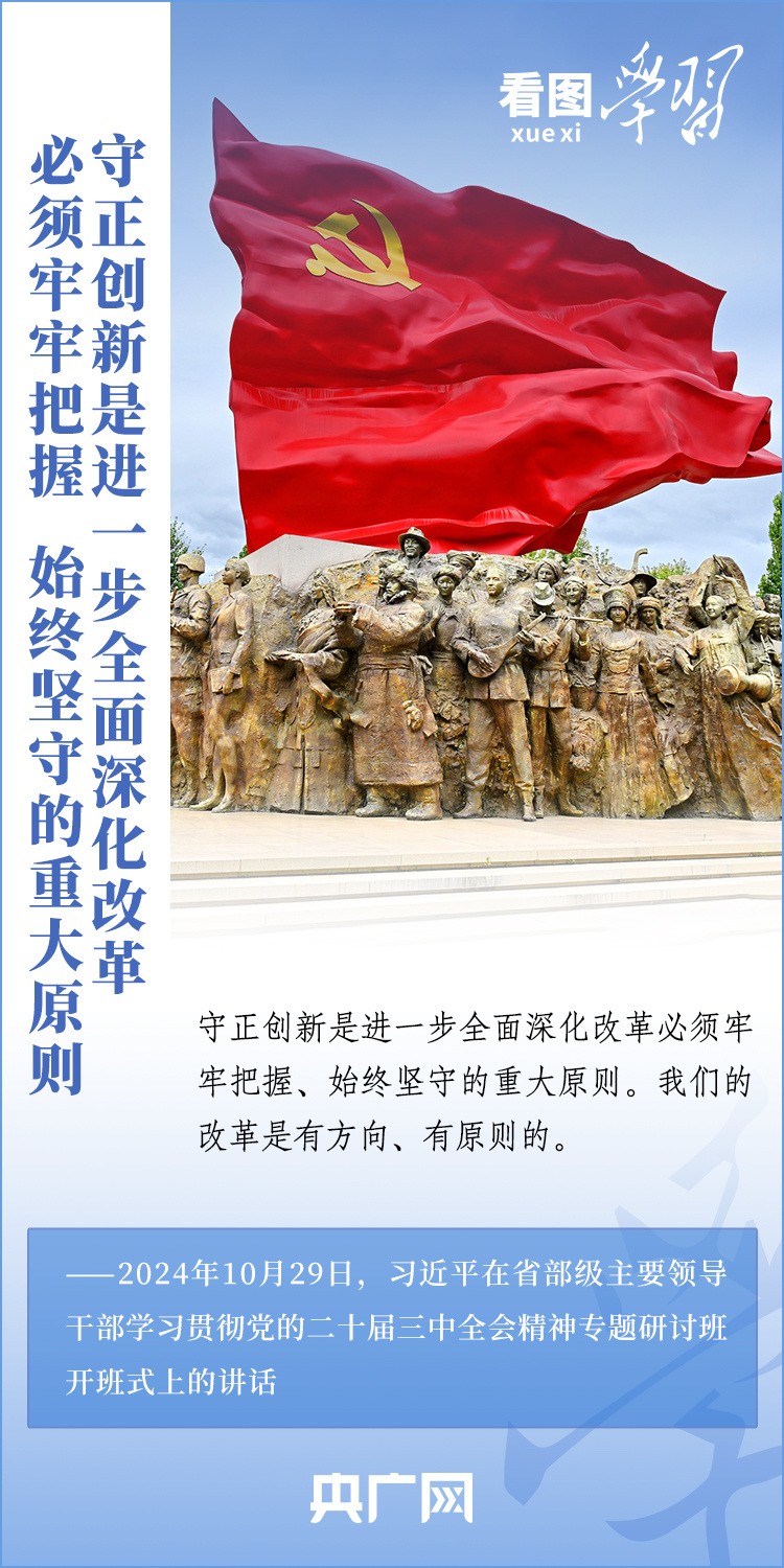 改革只有進行時,沒有完成時。10月29日,省部級主要領導干部學習貫徹黨的二十屆三中全會精神專題研討班在中央黨校(國家行政學院)開班。習近平總書記發表重要講話,就進一步全面深化改革的一系列重大問題進行深刻闡釋,強調要牢牢把握、始終堅守“守正創新”這一重大原則,把握好“四對關系”,奮力打開改革發展新天地。一起來學習!