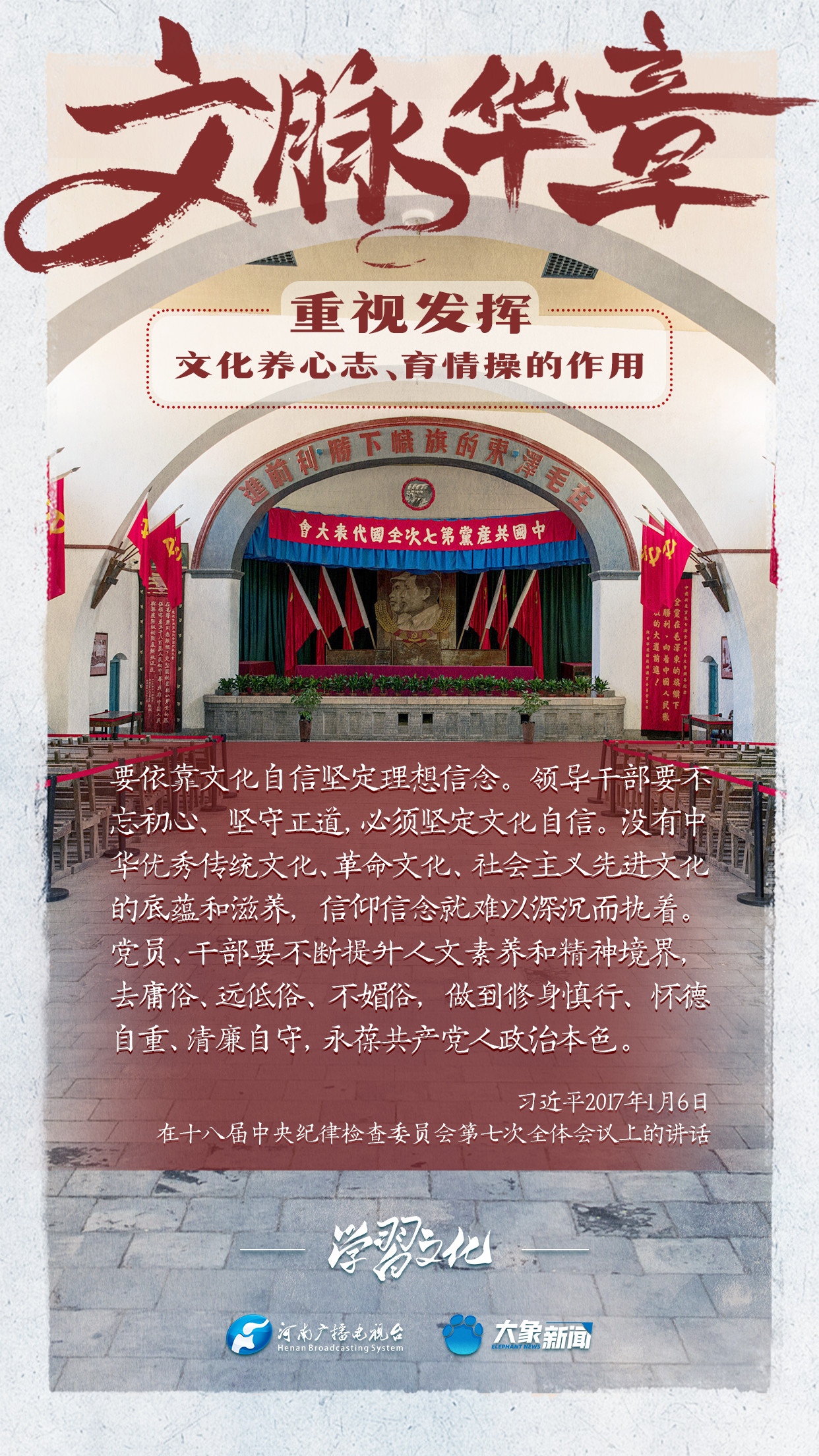 習近平總書記在主持中共中央政治局第十七次集體學習時強調,重視發揮文化養心志、育情操的作用,涵養全民族昂揚奮發的精神氣質??倳浉叨戎匾曃幕淖饔茫l表了一系列重要講話,倡導以文載道、以文傳聲、以文化人。我們一起學習。