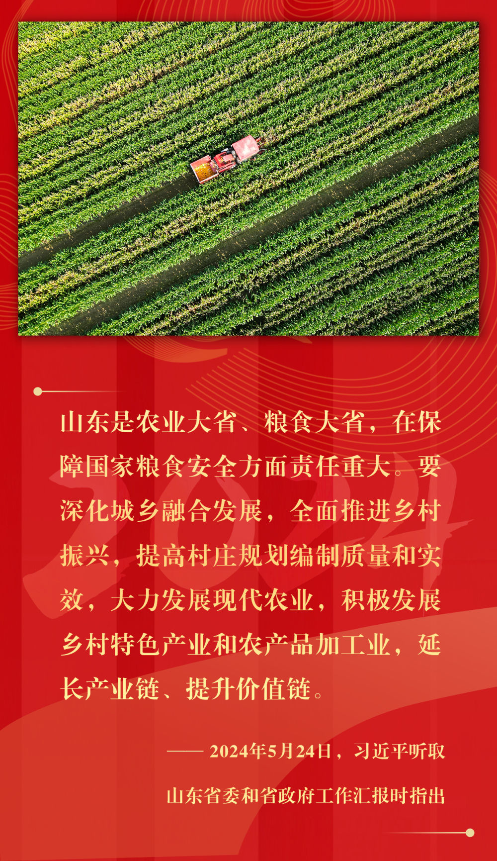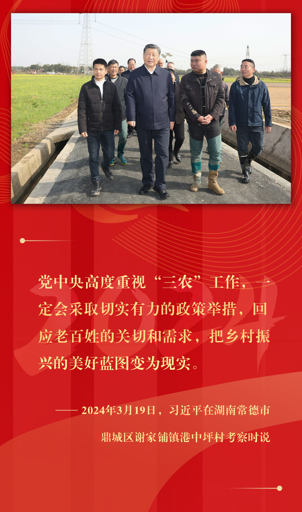 堅持城鄉融合發展、持續深化農村改革、支持強農惠農富農、拓寬農民增收渠道、強化農業科技和裝備支撐、確保糧食和重要農產品穩產保供……2024年,習近平總書記在基層考察期間,持續關注鄉村振興,多次提出重要指示,落子關鍵處、科學謀布局,千方百計推動農業增效益、農村增活力、農民增收入。