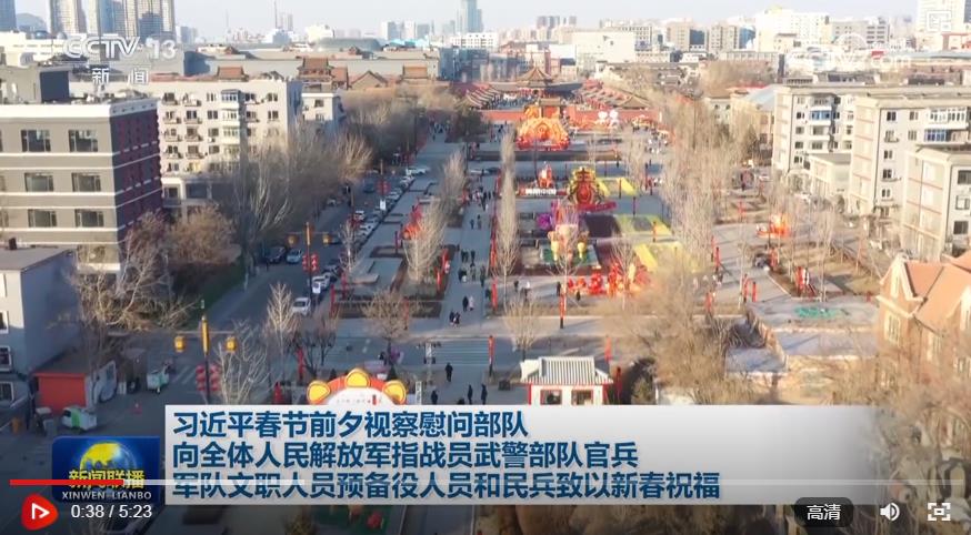 在中華民族傳統節日春節來臨之際,中共中央總書記、國家主席、中央軍委主席習近平24日到北部戰區機關視察慰問,通過視頻看望基層官兵,檢查部隊戰備值班和執行任務情況,代表黨中央和中央軍委,向全體人民解放軍指戰員、武警部隊官兵、軍隊文職人員、預備役人員和民兵致以誠摯問候和新春祝福。