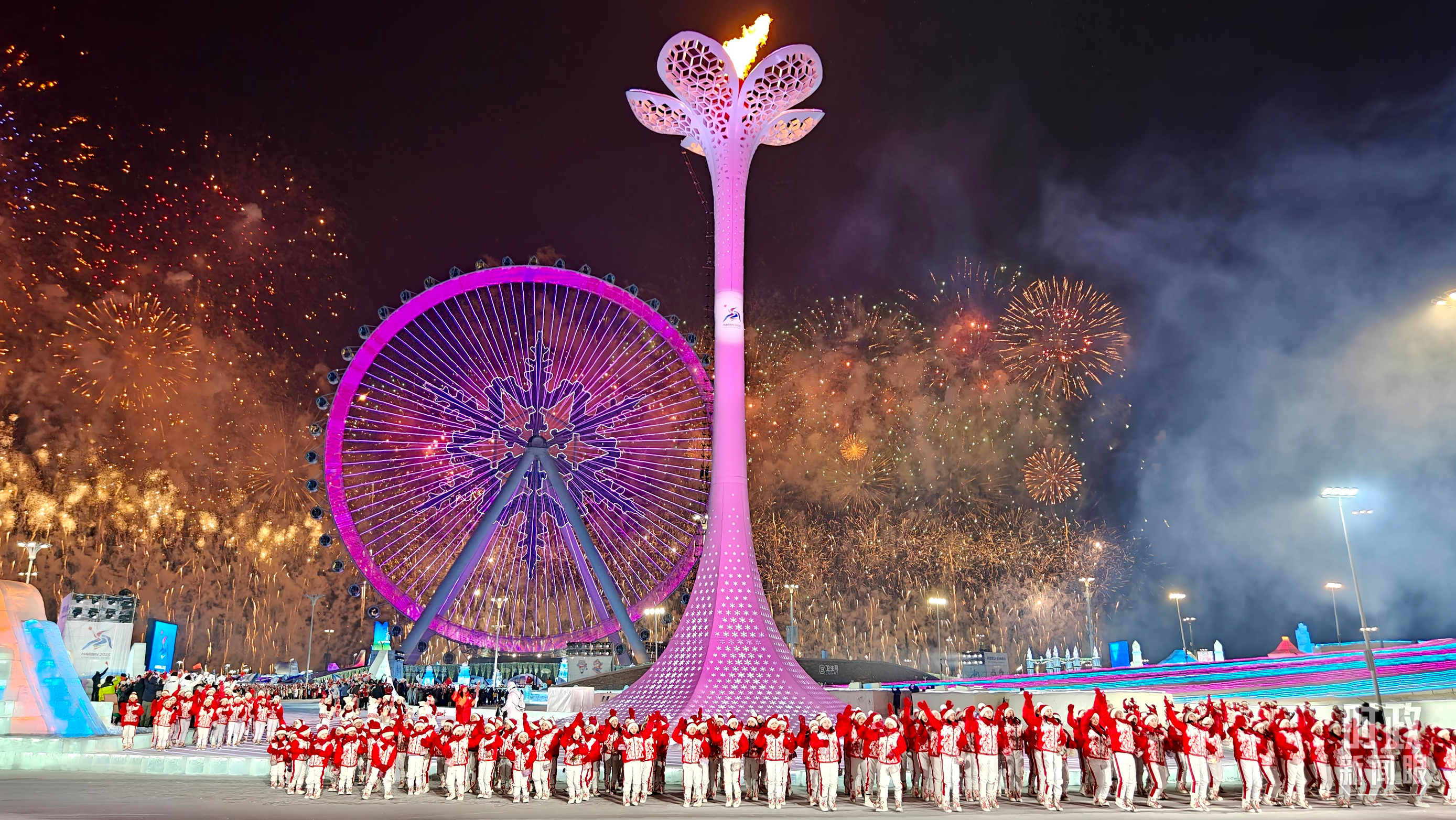 哈爾濱亞冬會主火炬點燃。(總臺記者任秋宇拍攝)