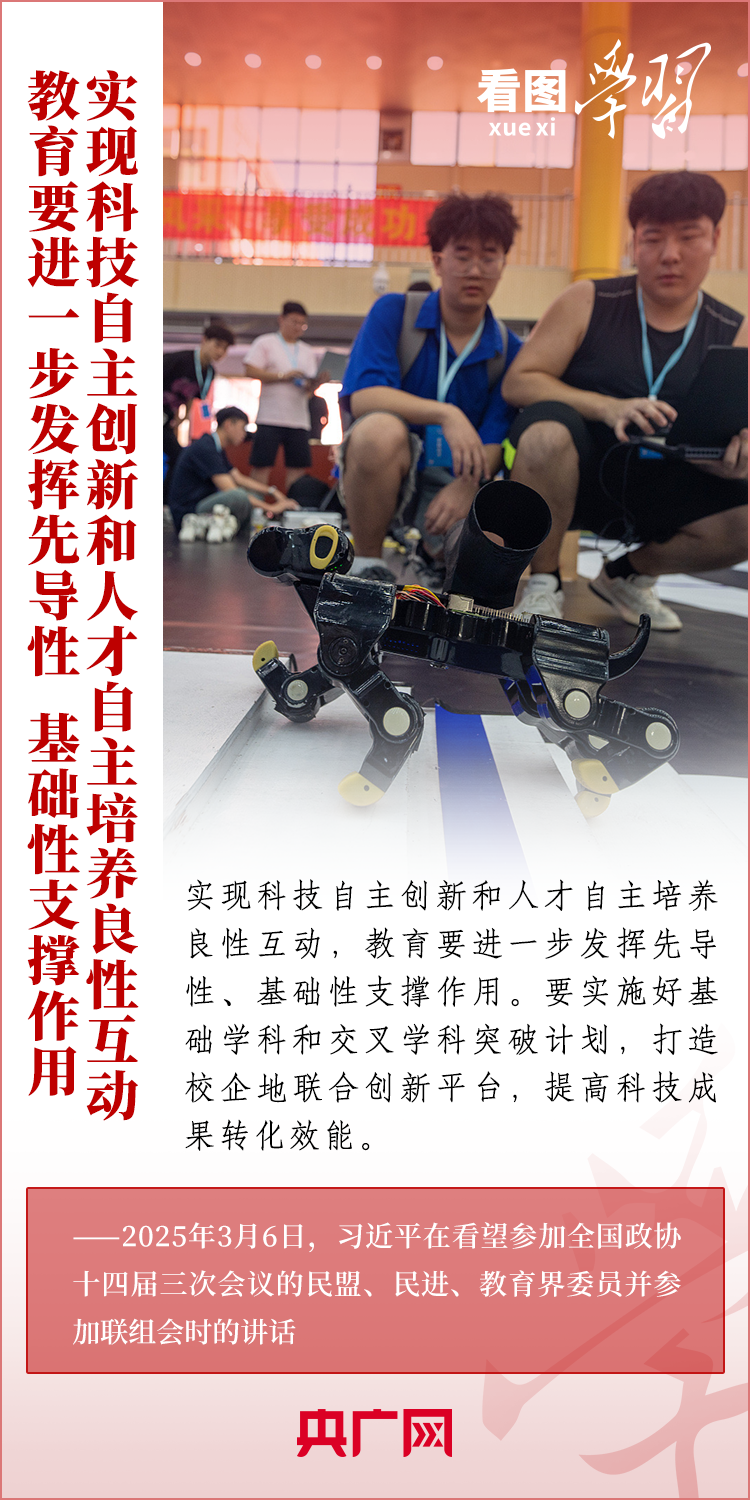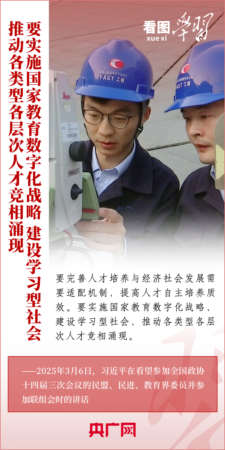 “建設教育強國、科技強國、人才強國,是全黨全社會的共同責任。”3月6日,習近平總書記在看望參加全國政協十四屆三次會議的民盟、民進、教育界委員并參加聯組會時發表重要講話。總書記就做好教育、科技、人才工作作出深刻闡釋,強調必須深刻把握中國式現代化對教育、科技、人才的需求,強化教育對科技和人才的支撐作用,進一步形成人才輩出、人盡其才、才盡其用的生動局面。一起來學習!