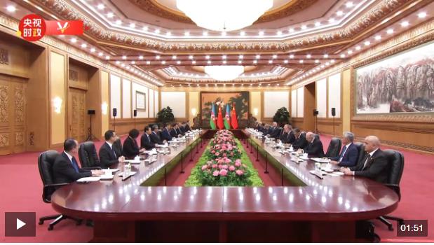 阿利耶夫說(shuō):“尊敬的習(xí)近平主席閣下,我多次應(yīng)您的邀請(qǐng)?jiān)L問(wèn)貴國(guó),在我看來(lái),這恰恰體現(xiàn)了兩國(guó)之間牢固的友誼。我每次來(lái)中國(guó),都能看到貴國(guó)在您的英明領(lǐng)導(dǎo)下又取得了新的發(fā)展,阿塞拜疆堅(jiān)定恪守一個(gè)中國(guó)原則。阿塞拜疆支持中國(guó)提出的共同構(gòu)建人類命運(yùn)共同體的理念,以及全球發(fā)展倡議、全球安全倡議、全球文明倡議。”