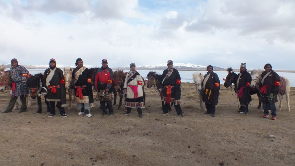 部分長(zhǎng)江源村生態(tài)管護(hù)員在巡護(hù)的草原上合影。(受訪者供圖)