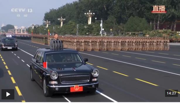 在雄壯的軍樂聲中,習近平乘車沿著寬闊的長安街,依次檢閱徒步方隊和裝備方隊。