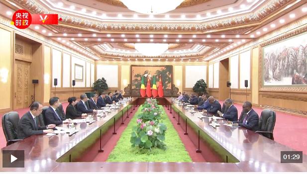 9月4日中午,國家主席習近平在北京人民大會堂會見來華出席紀念中國人民抗日戰爭暨世界反法西斯戰爭勝利80周年活動的剛果(布)總統薩蘇。兩國元首宣布將雙邊關系定位提升為中剛高水平命運共同體。
