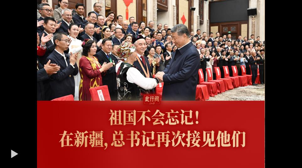 習近平23日下午接見新疆各族各界代表。代表中,我們發現了這4位,他們是“七一勛章”獲得者魏德友、“七一勛章”獲得者買買提江·吾買爾、“人民楷模”布茹瑪汗·毛勒朵、“人民衛士”巴依卡·凱力迪別克。習近平總書記微笑著同他們親切握手。