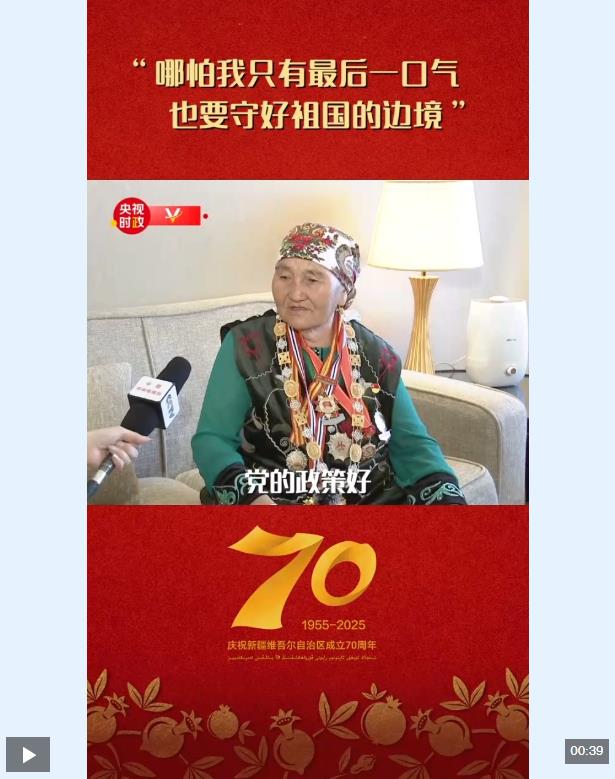 “人民楷?!眹?guó)家榮譽(yù)稱號(hào)獲得者布茹瑪汗·毛勒朵表達(dá)了她最想對(duì)總書記說(shuō)的話:“我從19歲開始守邊護(hù)邊,哪怕我只有最后一口氣,也要守好祖國(guó)的邊境?!?/p>