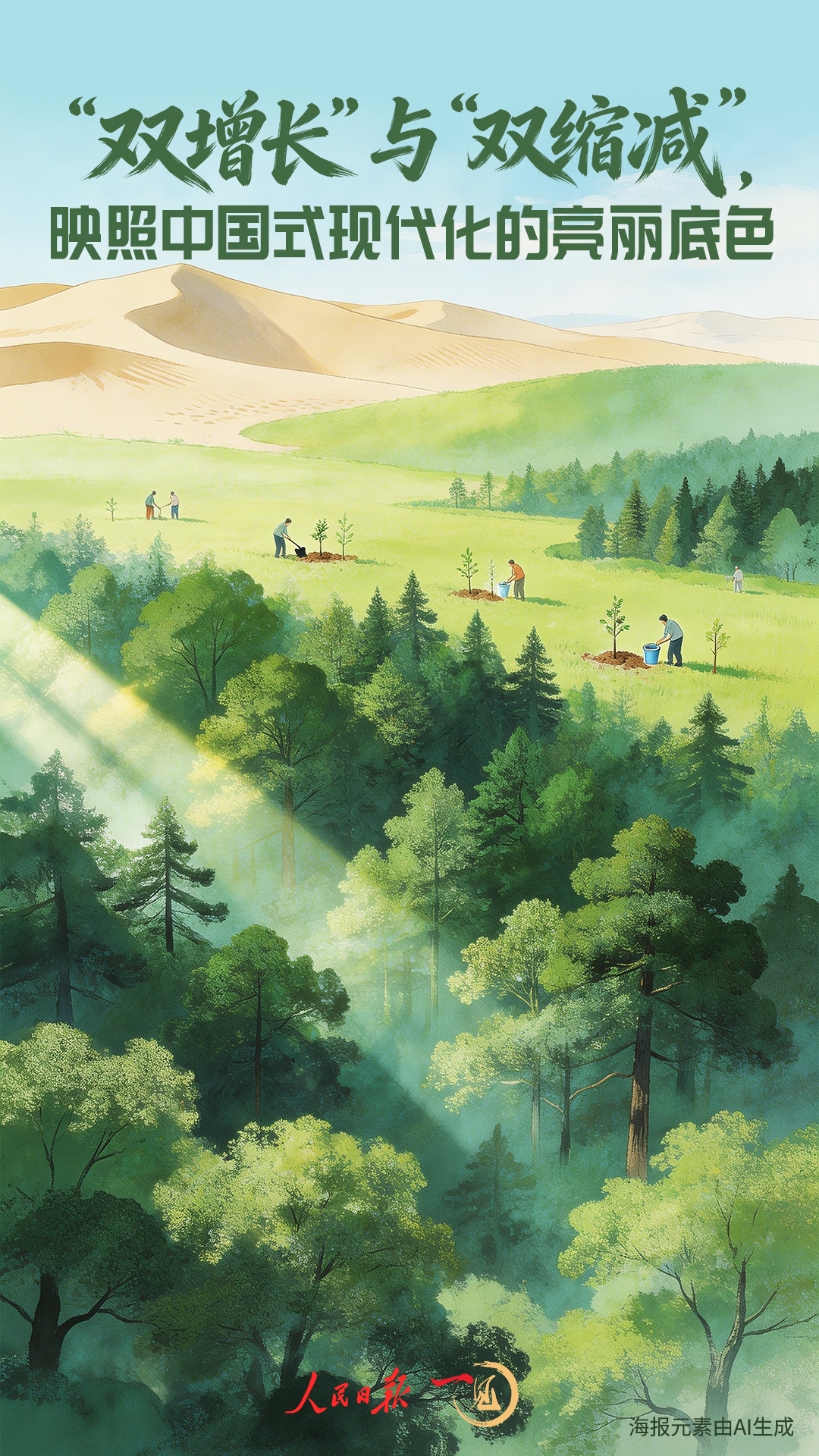 每一抹新綠,都是跨越時空的接力:是河北塞罕壩三代建設者俯首荒原,栽下100多萬畝林海;是“植樹娘子軍”陶鳳交和姐妹們搏擊流沙,在海南昌江筑起綠色長城;是人們在西藏那曲挑戰極限,終結海拔4500米高寒地區無樹的歷史……